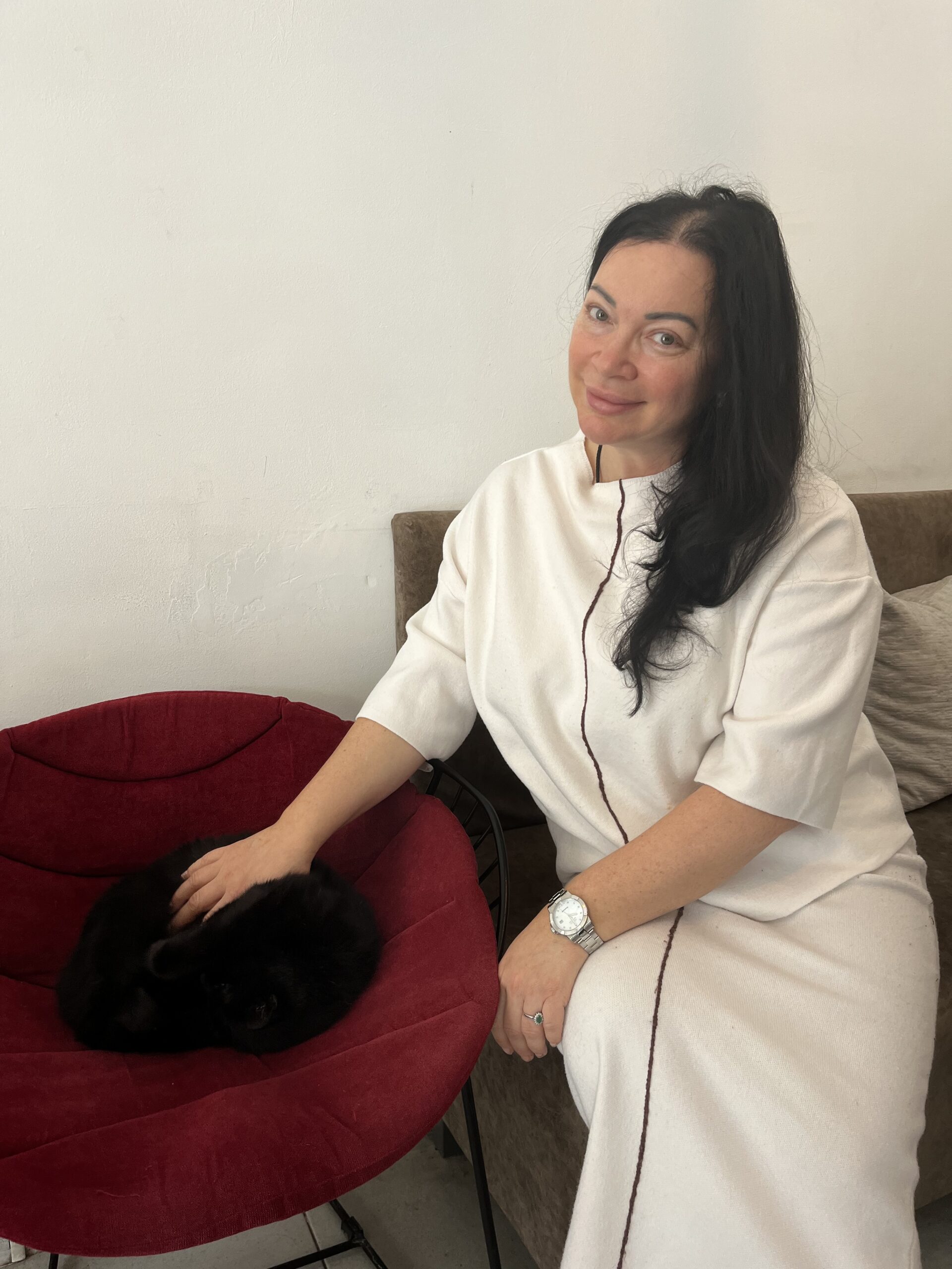 На фото ⸺ Анна Горобчук із безпритульним котом «Зефіром».
