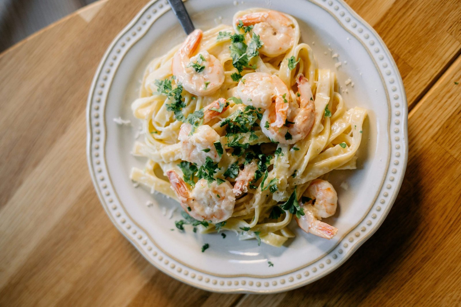 Щоб страва виглядала ще ефектніше, викладіть пасту у глибоку тарілку у вигляді «гнізда», зверху розмістіть кілька креветок і прикрасьте петрушкою. Така подача додасть вечері особливого настрою та зробить її справді святковою.