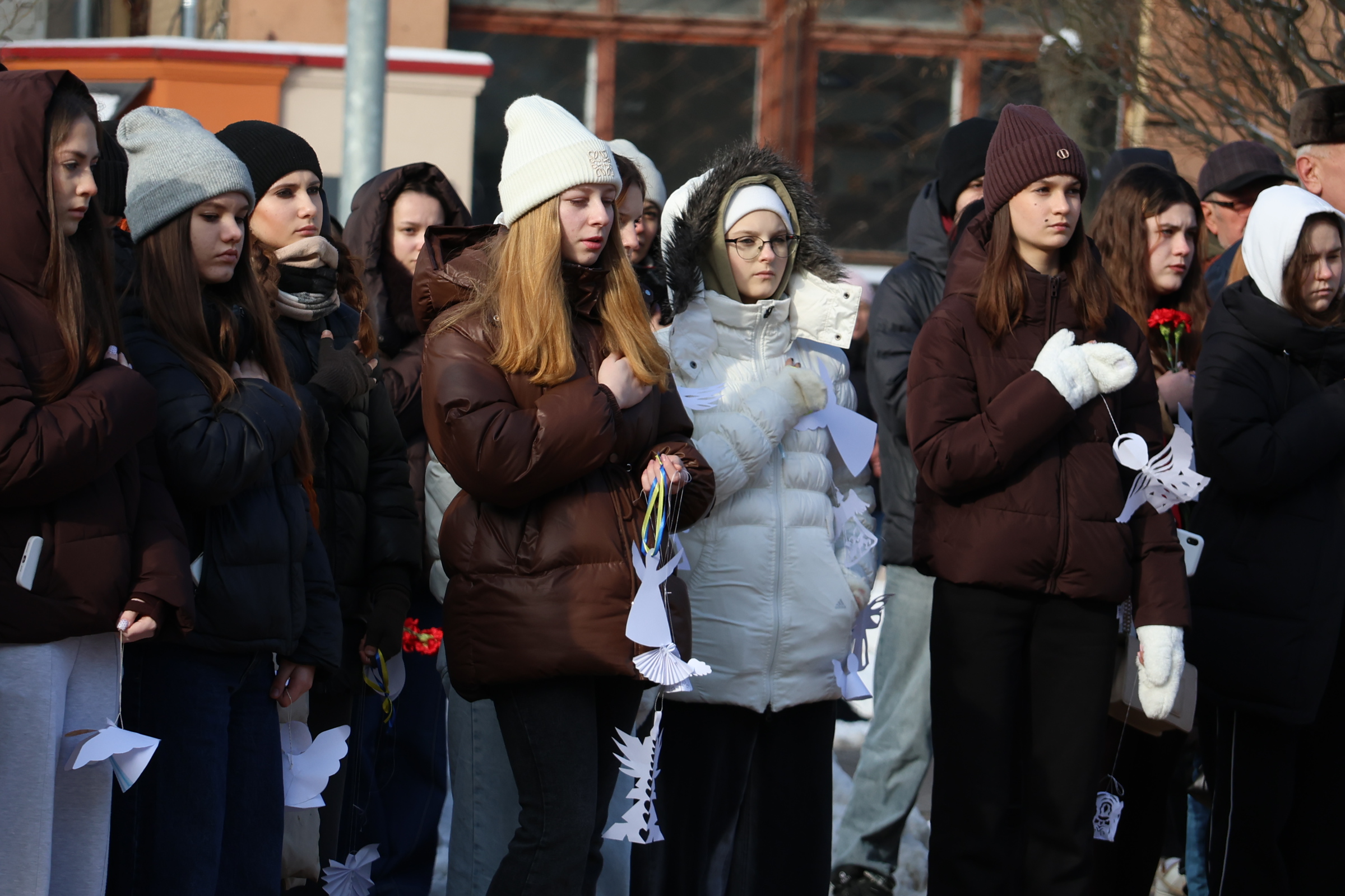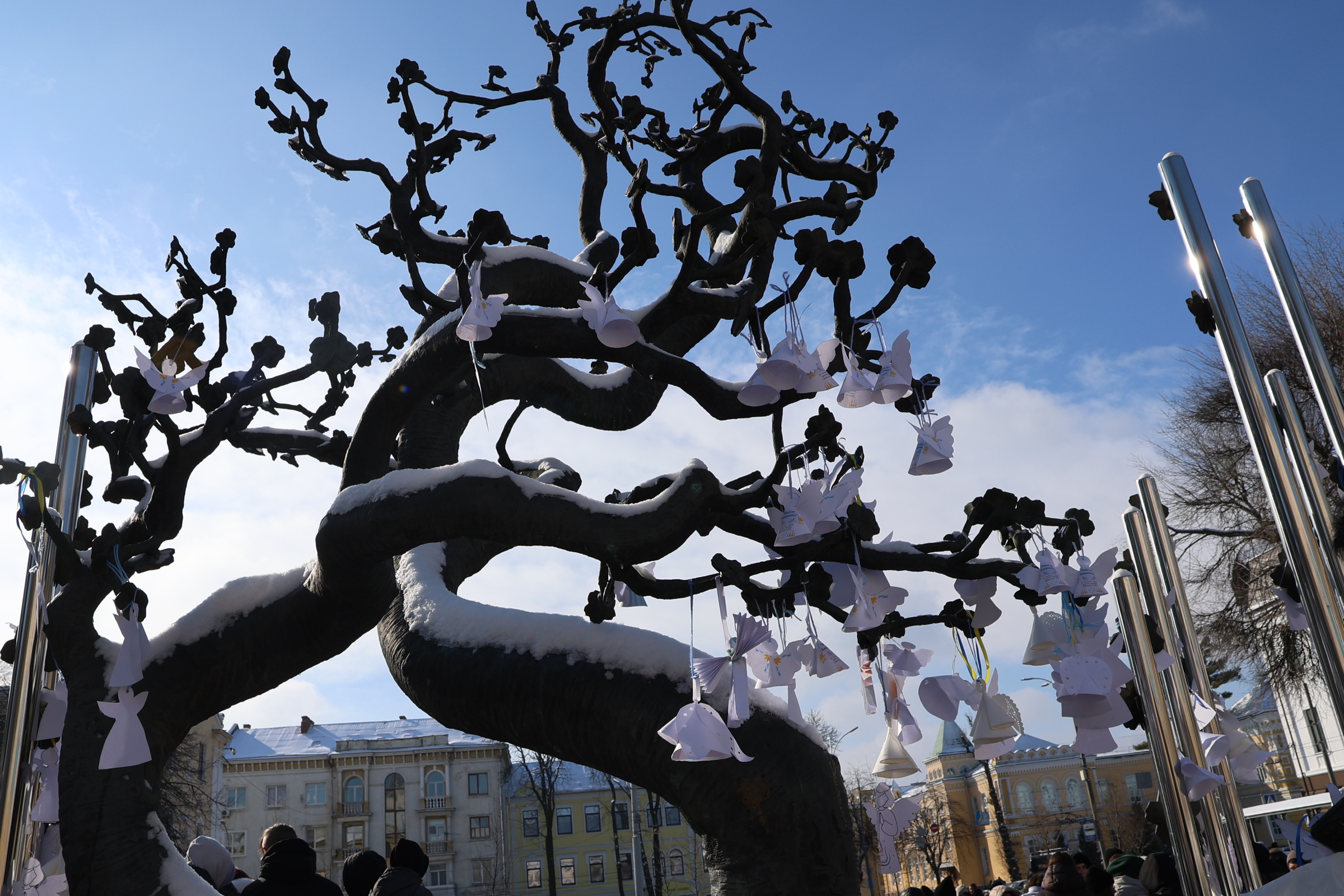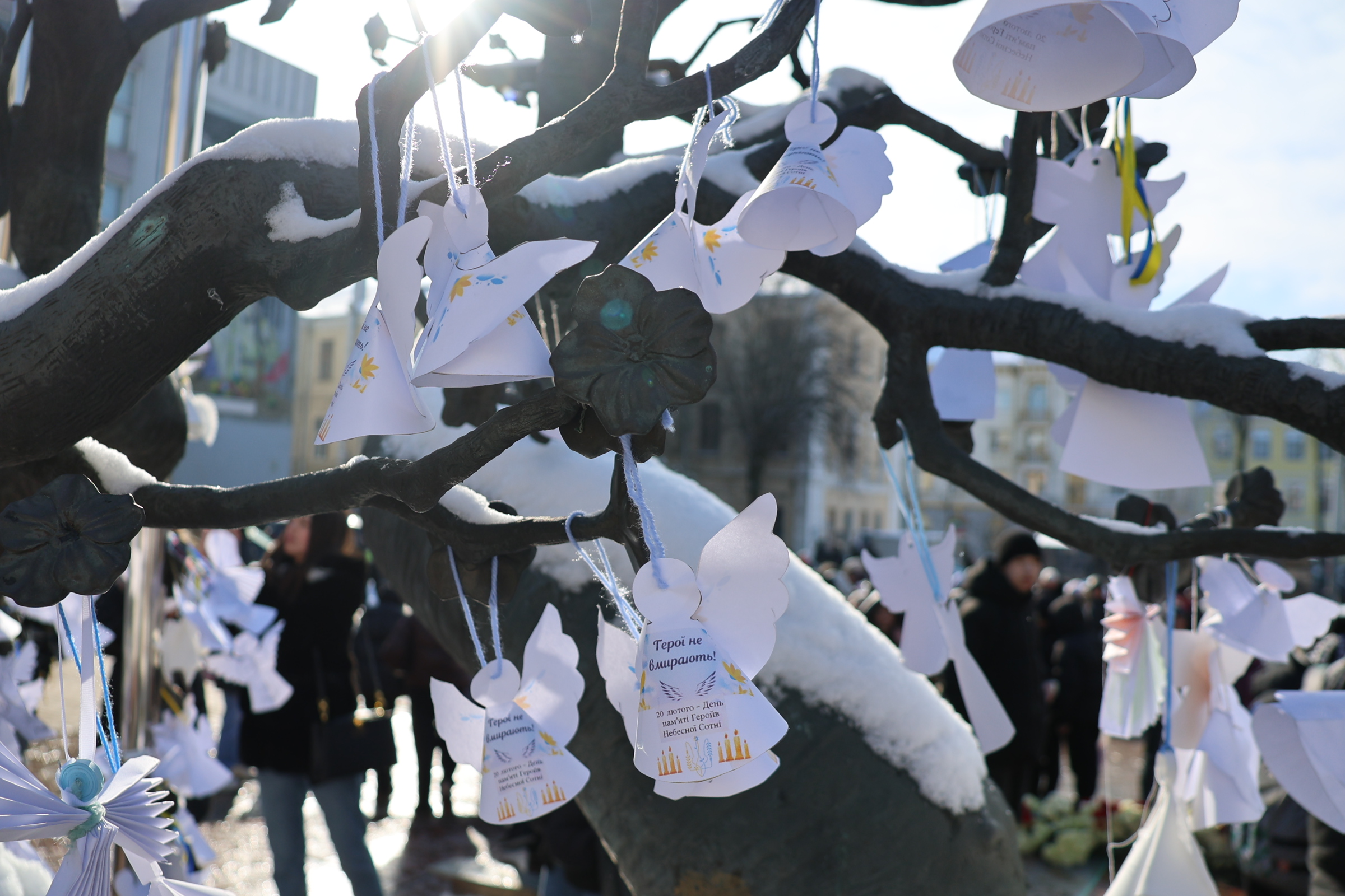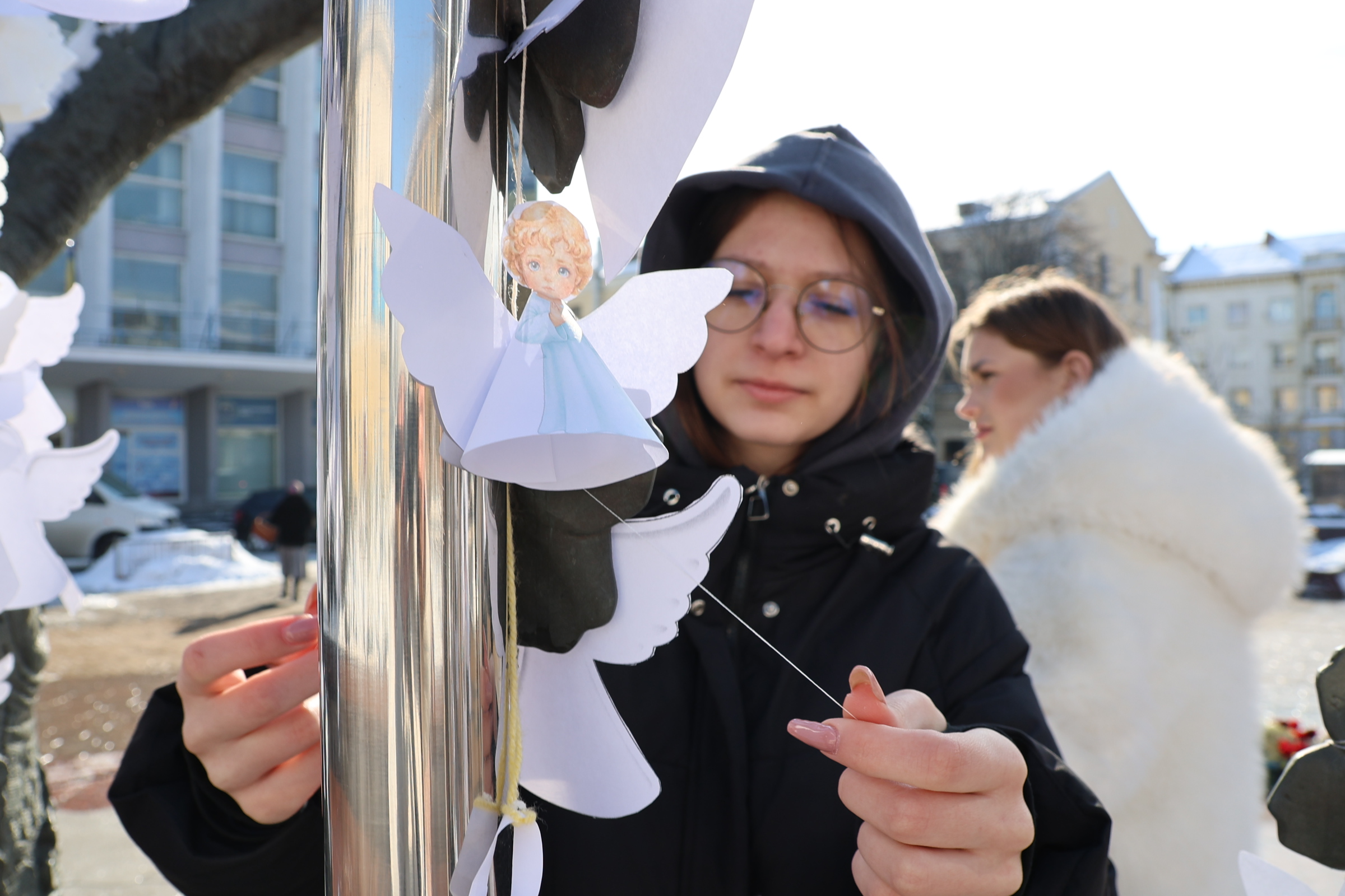 Білі паперові ангели, розвішані під відкритим небом, стали символом пам’яті, вдячності та незламності українців. Акція вкотре нагадала: пам’ять про Героїв живе в серцях людей і передається наступним поколінням.
