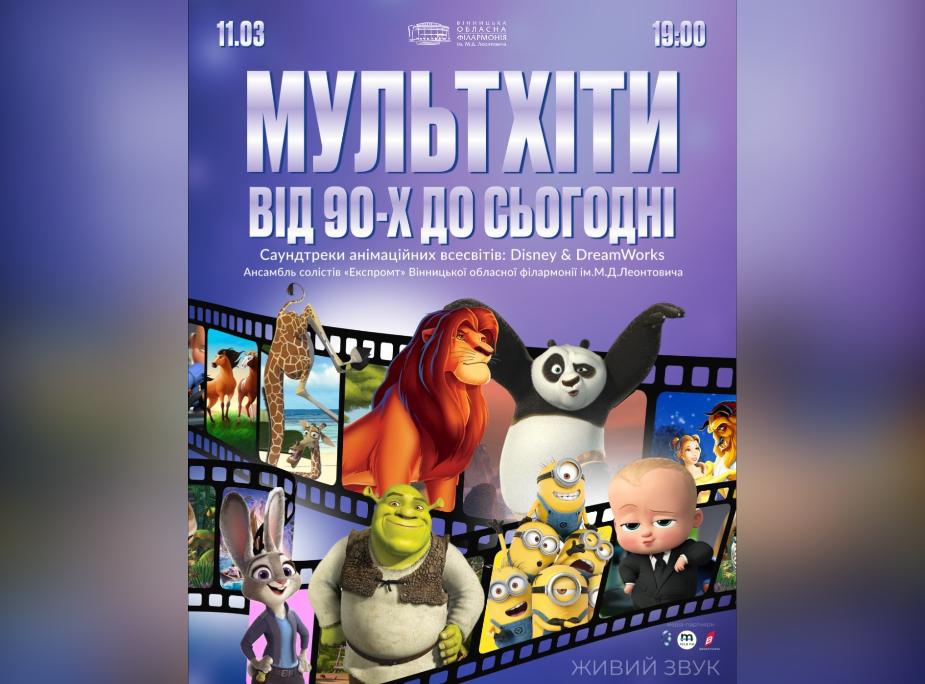 У Вінницька обласна філармонія імені Миколи Леонтовича анонсували концертну програму «МультХіти від 90-х до сьогодні». Подія відбудеться 11 березня о 19:00 та об’єднає знайомі з дитинства мелодії й сучасні анімаційні саундтреки.