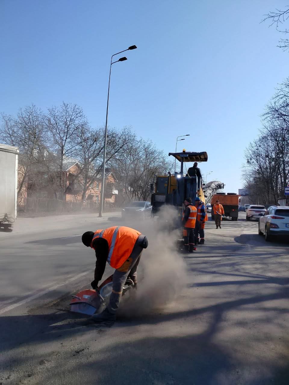 За словами заступника директора департаменту комунального господарства та благоустрою міської ради Юрія Ковальчука, через складні погодні умови цієї зими кількість пошкоджених доріг збільшилася по всій країні. Нині, з настанням тепла, дорожники можуть використовувати важку техніку, зокрема фрези, які знімають верхній шар пошкодженого покриття та готують ділянки до ремонту.