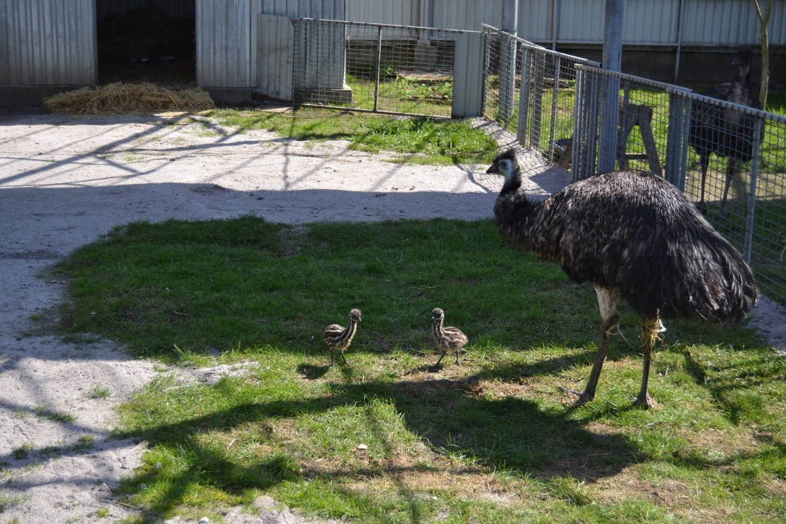 У Подільському зоопарку вперше з’явилося потомство страусів ему. Малюків уже можна побачити під час прогулянок разом із батьком — саме самець, як і в дикій природі, опікується потомством і відповідає за його безпеку.