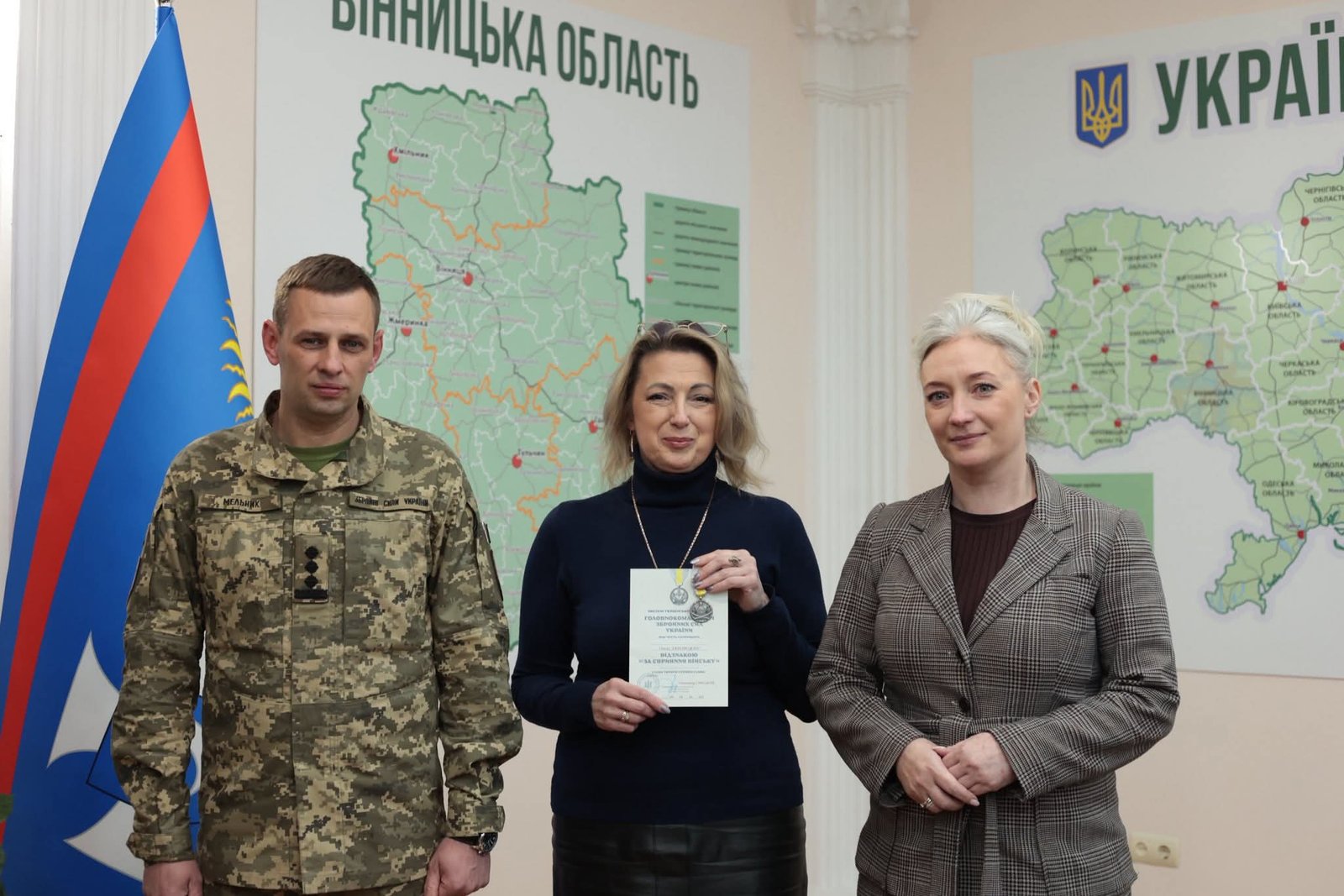 Почесним нагрудним знаком «За сприяння війську» нагороджено директорку департаменту охорони здоров’я та реабілітації Вінницької обласної військової адміністрації Ольгу Задорожну.